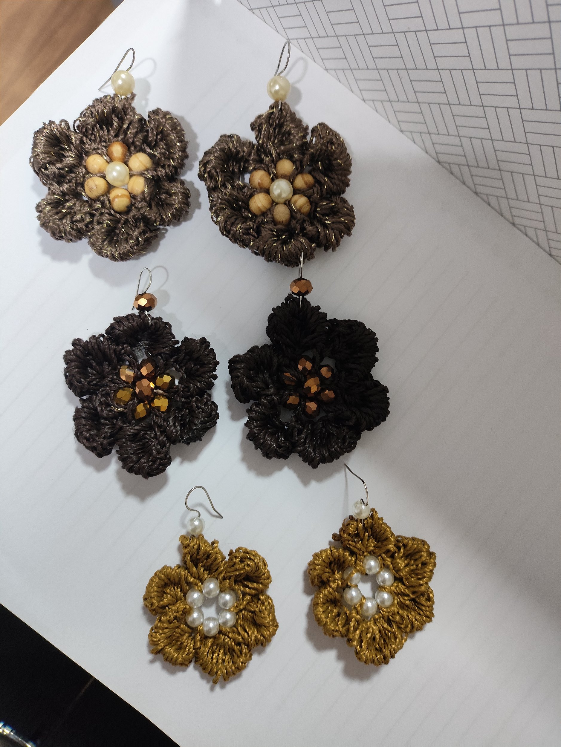 Brincos artesanais em formato de flor, confeccionados em crochê delicado, com acabamento impecável. Decorados com cristais reluzentes e pérolas ABS que adicionam sofisticação e brilho. Possuem base com anzóis hipoalergênicos, garantindo conforto e segurança no uso. Uma peça única, perfeita para complementar looks elegantes e modernos.